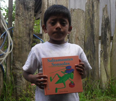 Jose Emilio is seven years old, and lives in Chajalajya. He loves the book "Saltamontes Sonsoles", a book about crickets. The pictures remind him of his village, where there are also many trees,  flowers and friends.